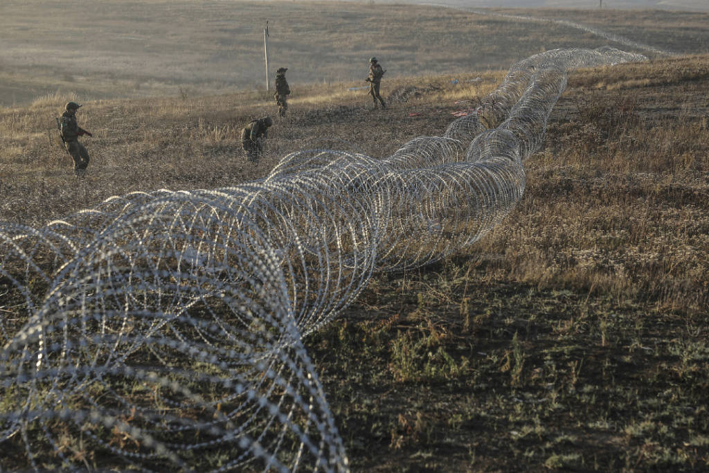当地时间2024年10月30日,顿涅茨克地区恰索夫亚尔,乌克兰第24机械化旅的士兵们在前线安装反坦克地雷和非爆炸性障碍物。视觉中国 图