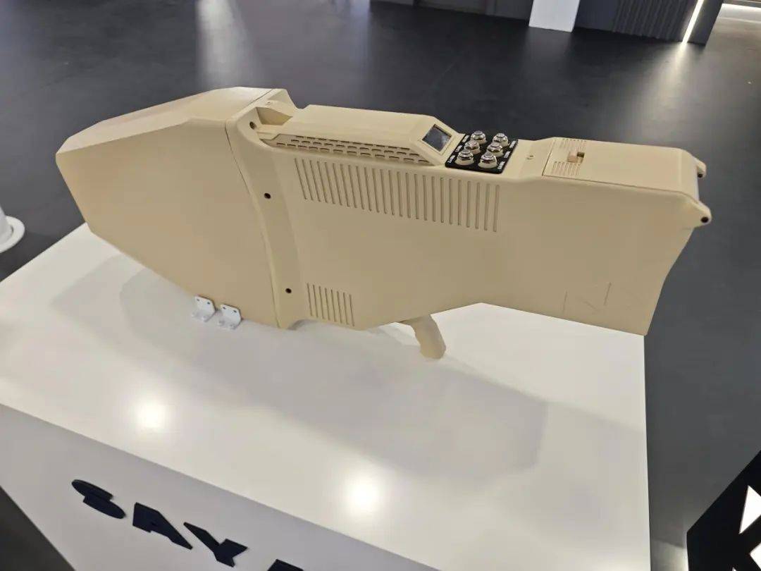 沙特展台的反无人机装备,对无人机“软杀伤”的干扰枪。