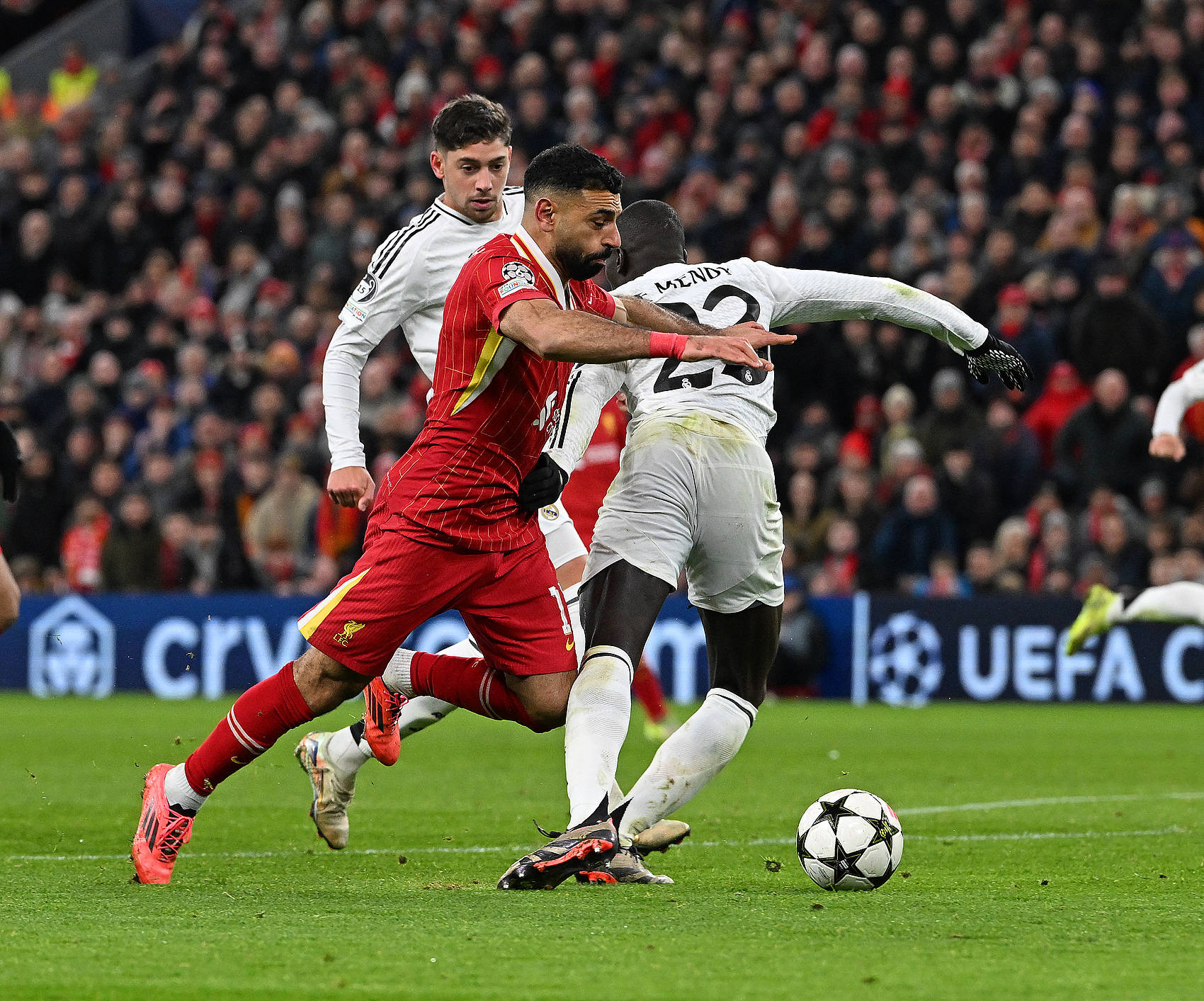 本场比赛,利物浦门神阿利森、小基耶萨和若塔因伤缺阵,阿诺德伤愈替补,范迪克坐镇后防线,萨拉赫领衔锋线三叉戟;皇马方面,楚阿梅尼、维尼修斯、阿拉巴、卡瓦哈尔、米利唐和罗德里戈因伤缺阵,巴尔韦德客串右后卫,贝林厄姆坐镇中场,姆巴佩搭档迪亚斯组成双前锋。第4分钟,萨拉赫传球,努涅斯禁区右肋低射皇马门神库尔图瓦扑出,回防的劳尔-阿森西奥险些自摆乌龙,他将皮球踢到门线后惊险解围。第10分钟,罗伯逊做球,迪亚斯禁区左肋低射近角偏出左门柱。