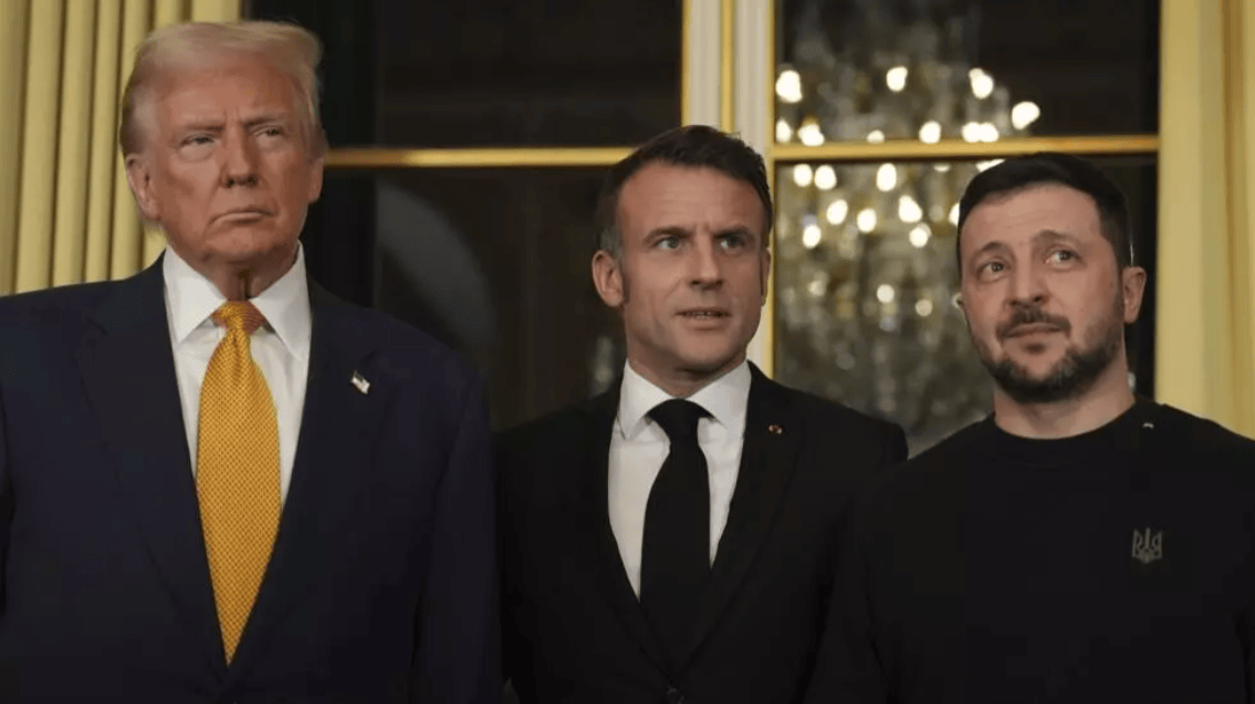 12月7日,法国总统马克龙邀请美国当选总统特朗普和乌克兰总统泽连斯基在爱丽舍宫会面。(图源:美联社)