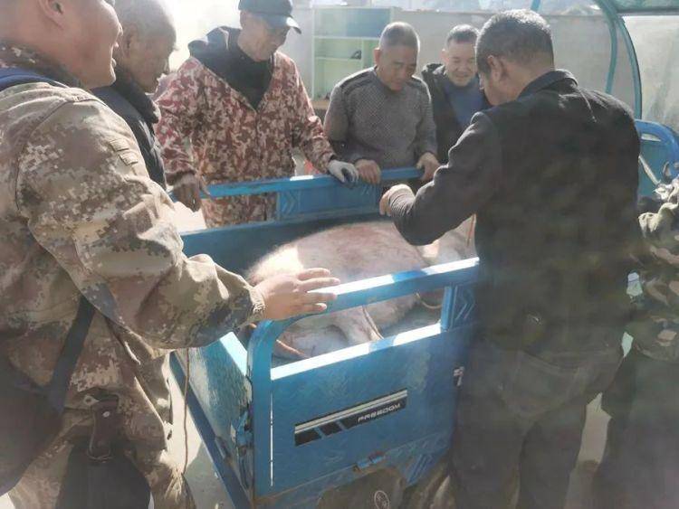 队员们回忆,这头猪很狡猾,先是带着他们向反方向走,之后又掉头往回走。等发现那头猪的身影,他们一边让猎犬去拖住它,一边联系杜爷爷。“经过近一个小时的等待,杜爷爷与家人赶到现场,这里距离杜爷爷家直线距离超过5公里。后来,大家合力将猪抬下了山。”