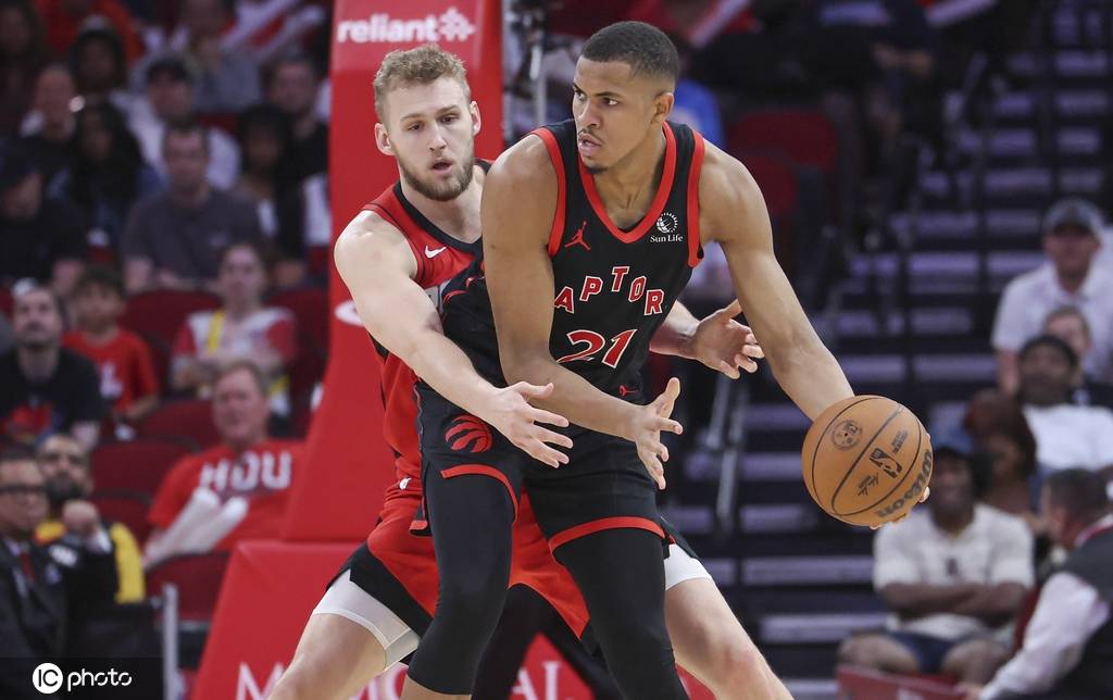 猛龙队首发:伊曼纽尔-奎克利、斯科蒂-巴恩斯、奥查伊-阿巴吉、乔纳森-莫格博、格雷迪-迪克