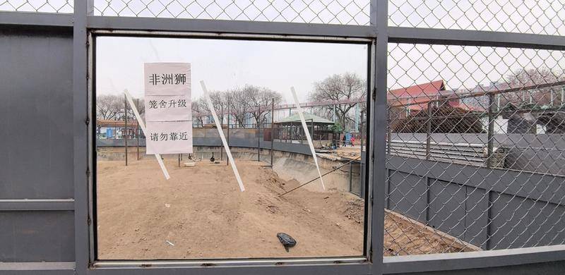 记者买票进入园区,看到整个园区不是很大,有兔子、小鹿、鹈鹕等区域,其中最大的区域就是非洲狮区域,周围拉着警戒线,并有告示牌提示:非洲狮笼舍升级,请勿靠近,场子里有几只鸭子在散步。