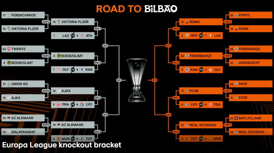 北京时间2月21日,欧联淘汰赛附加赛全部战罢,16强出炉。